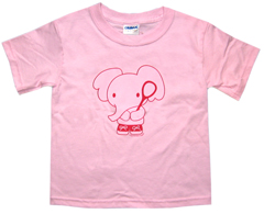 100% cotton children's t-shirt printed two colours (pink & red) on front with a one colour (red) "Squash Republic" logo on back.