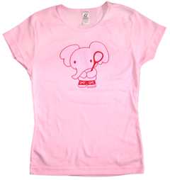Cotton cap-sleeve baby tee with a two colour (pink & red) logo on front.